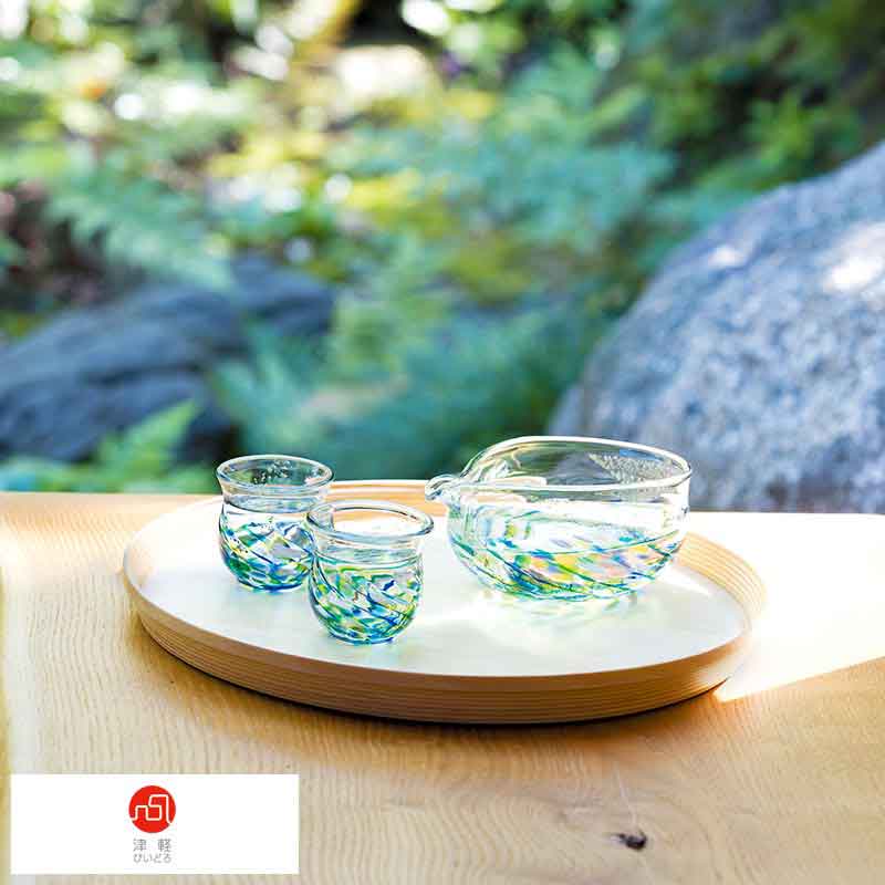 【 ポイント5倍 】 津軽びいどろ 酒器3点セット 片口酒つぎ1個 お猪口2個 酒器セット 日本製 ガラス プレゼント 男性用 メンズ 日本酒 グラス 酒器 ギフト 【送料無料】