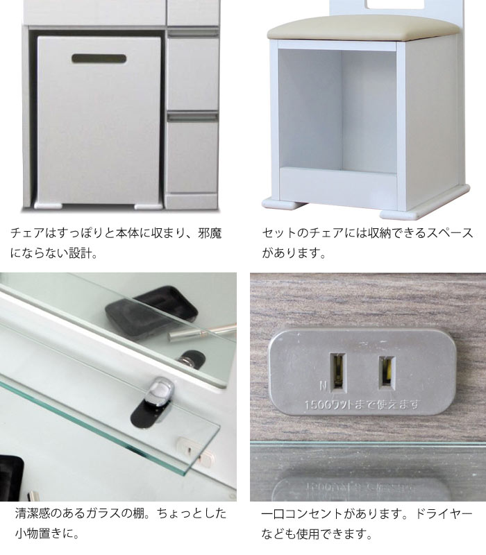 一口コンセント付きで、家電製品も使えて機能的なドレッサーです。