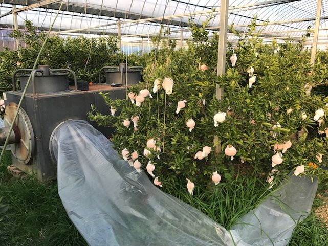 ※写真2枚目は温室でせとかに『サンテ』という果実袋を一つ一つ被せている様子です。